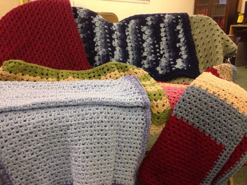 We pray each week for the prayer concerns in our community and crochet blankets/prayer shawls together.